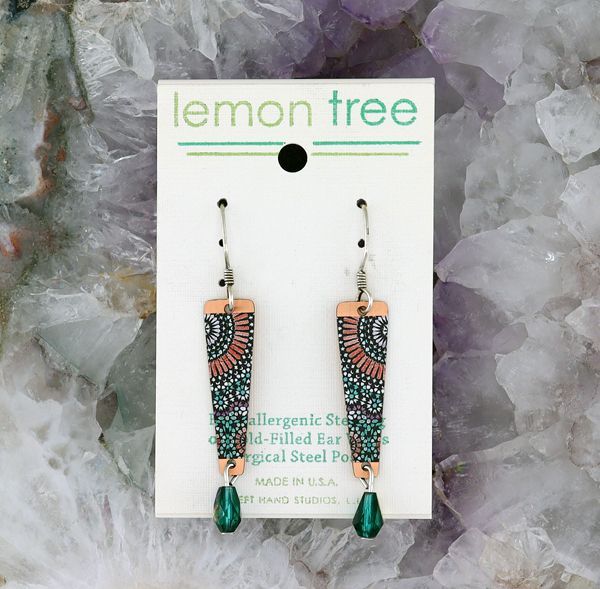 These wonderful Lemon Tree earrings are handmade in the U.S.A. The silver ear-wires are sterling silver the gold ear-wires are gold filled.