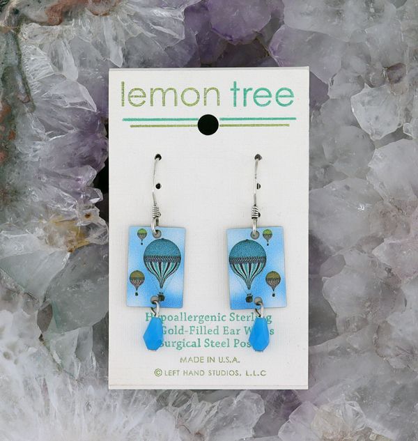 These wonderful Lemon Tree Hot Air Balloon earrings are handmade in the U.S.A. The silver ear-wires are sterling silver and the gold ear-wires are gold filled.